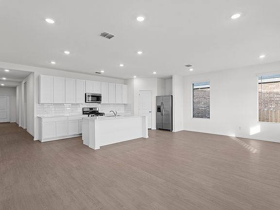 This Brand new four-bedroom home offers convenient single-floor living. Three bedrooms are located at the front of the home off the foyer, near a versatile flex space ideally suited as an office or studio. An open-concept living area blends the kitchen, living and dining areas, with a nearby covered patio providing simple indoor-outdoor living. The luxurious owner's suite completes the home, offering access to a spa-inspired bathroom and walk-in closet.