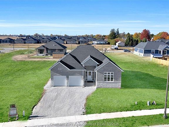 Welcome to the Fairview model by Mi Cazza Construction! This spacious home sits on a generous lot, 61 feet wide and over 140 feet deep, in one of Chatham’s most desirable new neighbourhoods just off Indian Creek with quick access to the 401. Surrounded by beautifully crafted new builds, this home is sure to impress from the moment you walk into the bright, open foyer with access to two front bedrooms that can easily double as office space, plus a full bath with a tub. The primary suite is perfectly positioned at the back of the home and features a walk-in closet, ensuite with a walk-in shower, and a double vanity. The open kitchen and dining area include a large island with sink, beautifully finished Mylen Cabinets, and a walk-in pantry. The family room offers a cozy gas fireplace for relaxing nights and crisp mornings, with convenient inside access to the double garage. Downstairs, a spacious open basement with large windows is ready for your personal touch. Outside, the covered back porch and deep backyard highlight the exclusivity of these premium lots. With 1,591 square feet, 3 bedrooms, and 2 full baths, the Fairview model is ready for you! Home is Where the Hart Is × Mi Cazza Construction. (sod and concrete driveway to be completed). Directions: At the intersection of Indian Creek Road W and Keil Dr S, continue South on Keil Drive S and turn left onto Rosewood Crescent. From there, make a right to continue on Rosewood and follow the curve to the left. The house will be on your left hand side.