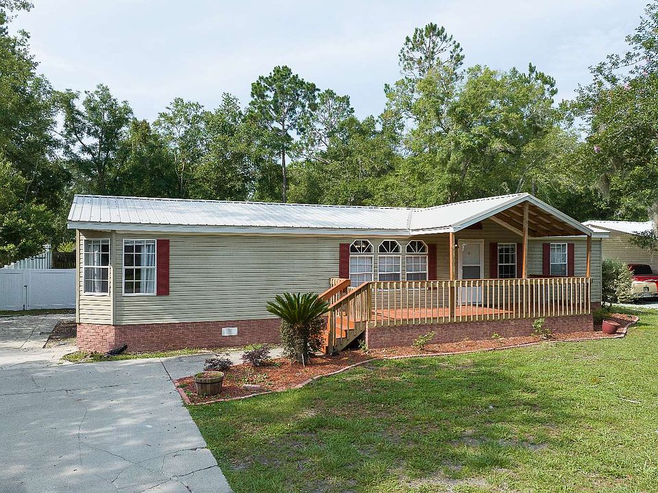 Renovated Home in a great neighborhood close to town! This home has a new covered front porch, a metal roof installed in 2021, and a fenced backyard. This open floor plan 3/2 home has new vinyl wood laminate floors, white cabinets, and granite countertops as well as new SS appliances and backsplash. New light fixtures and fans throughout, New shower in the main bath, new hot water heater, and new blower motors on the AC Unit. The living room has a large wood-burning fireplace. All three rooms have walk-in closets and one has a shiplap accent wall.