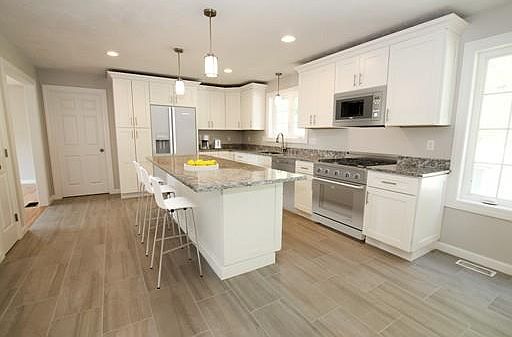 - Kit Dscrp: Main Level, Dining Area, Flooring - Hardwood, Countertops - Stone/Granite/Solid, Deck - Exterior, Flooring - Stone/Ceramic Tile, Breakfast Bar / Nook, Kitchen Island, Open Floor Plan, Recessed Lighting, Exterior Access, Balcony - Exterior