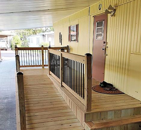Excellent value for this extra clean 1056 sq ft gem of a home! New laminate wood flooring and subfloors, newer kitchen appliances, hot water heater 2021. Bathrooms have newer vanities and flooring. There are closets everywhere in this home including three closets in main bedroom! Newer AC maintained quarterly. Metal roof with gutters maintained and reinforced. Under home has new tie downs, vapor barrier and insulation (June 2022). Enjoy relaxing on the screened in porch and use the outdoor shed for extra storage. The beautifully crafted ramp adds even more value to this must-see home. Highland Country Estates is a friendly community with clubhouse, pool, and activities. Small pets are welcome. Call now for your private tour!