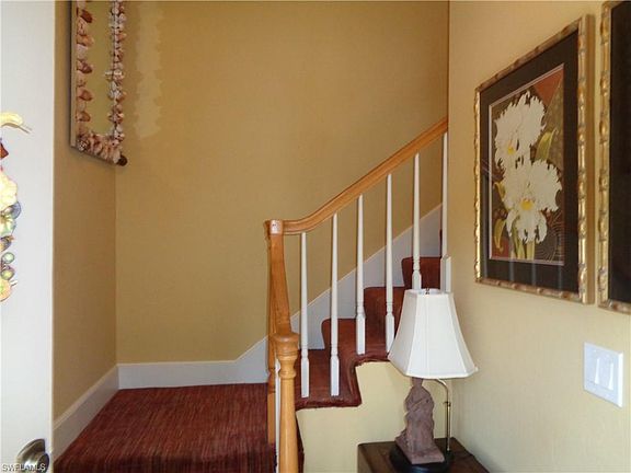 Understated Elegance! Immaculate second floor three bedroom, two bath carriage home with an attached garage! Spacious screened lanai overlooks the lake and fountain. Close to all that Naples has to offer, amazing beaches, chopping and great restaurants!