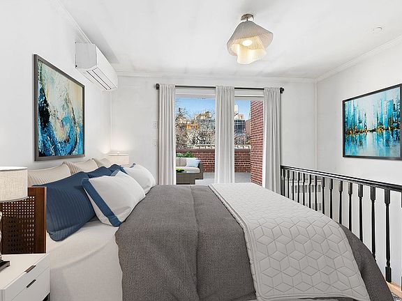 As you ascend to the upper level, you'll find the bedroom which is nicely sized with a walk-in closet. The bathroom is a vision of pure opulence, adorned with all-white marble and boasting a glass-walled shower, that is both inviting and rejuvenating. This floor also provides access to the large private roof deck, offering a serene retreat on beautiful, tree-lined West 82nd Street.