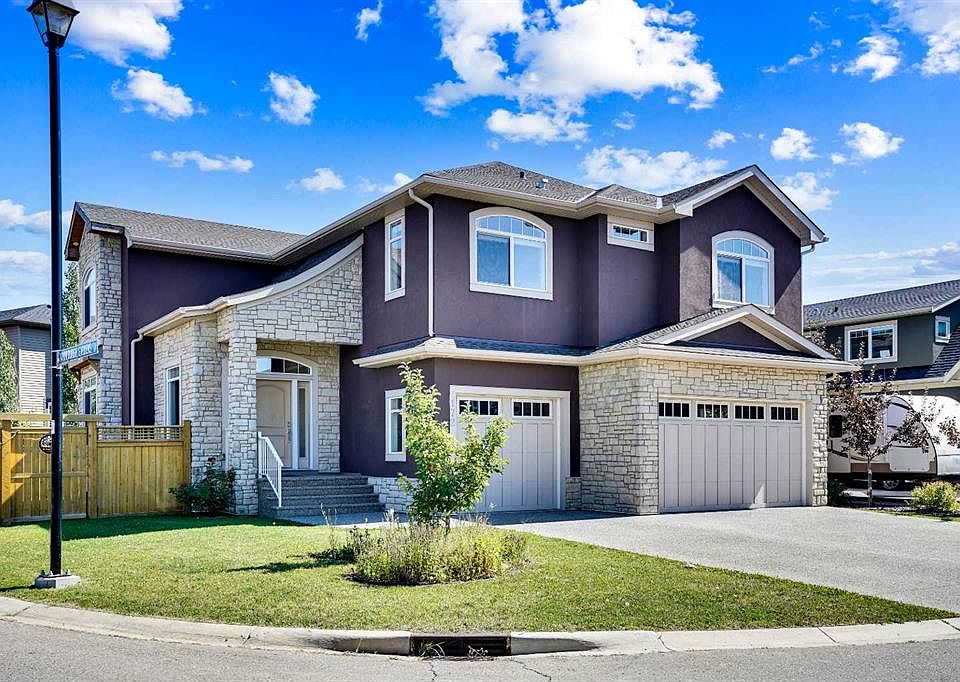 Open House 5th Oct 2025 from 11 AM to 2 PM. Welcome to luxury living in the heart of Chestermere! This exceptional home boasts outstanding curb appeal, featuring a distinctive sloped roof, custom stonework, and a spacious front porch with an extra-wide entry door. With over 4,000 sq ft of beautifully designed living space, this home is sure to exceed expectations! From the moment you step inside, you’ll be greeted by high-end upgrades throughout—including dazzling crystal chandeliers, a striking stone feature wall with a gas fireplace and built-in shelving, gorgeous granite countertops in every room, and gleaming engineered hardwood floors. Expansive Palladian windows flood the interior with natural light, while walk-in closets, custom built-ins, and premium appliances add to the home’s luxurious appeal. The bright, open-concept main floor includes a spacious foyer, large living and dining rooms, a generous office, bathroom, mudroom, and a chef-inspired kitchen. The kitchen is a true showstopper, equipped with an oversized island featuring a second sink and breakfast bar, ceiling-height cabinetry, and a large walk-in pantry. With 6 large bedrooms and 5 bathrooms, there's room for the entire family and more. The primary suite is a private retreat, accessed through elegant French doors into a massive bedroom with a walk-in closet that’s custom-outfitted with dressers, jewelry drawers, shoe racks, purse hooks, and a full-length mirror. The spa-like ensuite bathroom includes an oversized Jacuzzi tub and a walk-in stone and tile shower. Upstairs, you’ll find a spacious family room with built-ins, three additional bedrooms, two full bathrooms, and a laundry room. (Plus, there are hook-ups for a second laundry area on the main floor.) The fully developed basement offers two more bedrooms, a large rec/family room, and three separate storage rooms—ideal for a growing family or guests. For those who love to entertain, built-in speakers throughout the home and backyard provide the perfect ambiance. The private backyard oasis features a massive exposed aggregate patio and a new quarry stone fireplace—perfect for cozy summer nights. The landscaped yard includes mature trees for privacy, raspberry bushes, perennial gardens, and even fruit trees, including a cherry tree and an apple tree that produces three apple varieties! The oversized triple garage is a dream for hobbyists or mechanics, with high knockdown ceilings, a large built-in workbench, full insulation, and rough-in for a natural gas heater. The expansive driveway offers ample parking, accommodating an RV and three additional vehicles, plus there's backyard access via a large gate for storing a boat or RV on this huge 5,527 sq ft corner lot! Tucked away on a quiet street with minimal traffic, this home is just one block from Eastlake School and Camp Chestermere, and close to walking paths, parks, playgrounds, as well as shopping, dining, and other amenities.
