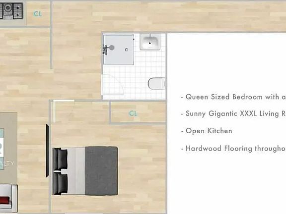 Unbelievable sunlightGreat sunlight exposureCorner apartmentLarge closetQueen sized bedroomOpen kitchen