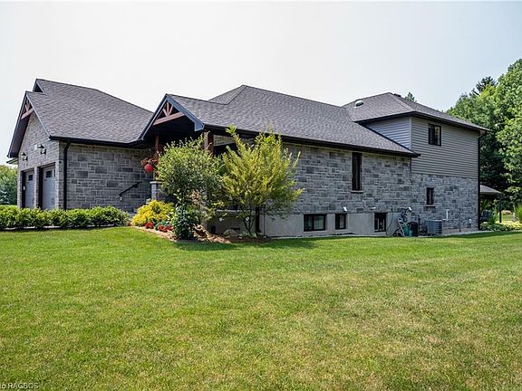Stunning custom built home in highly desired location! This dream property built in 2017 is located on a private 2-acre lot in Georgian Bluffs, just on the city limits of Owen Sound. Boasting a spacious 3-bedroom, 3- bathroom layout, this home is perfect for families looking for ample living space. As you step inside, you'll be immediately struck by the attention to detail and the luxurious finishes throughout. The kitchen features beautiful quartz countertops, stainless steel appliances, plenty of cupboard space, a large pantry to store all your essentials and a bonus deck access for grilling on the BBQ in any season. The unique multi-level floor plan of the home provides plenty of living space for you and your loved ones to spread out and relax. Enjoy privacy and comfort in the primary suite, situated on the second level with ample space in the walk-in closet and a calming ensuite with a tile shower. The home also includes a separate mudroom entrance, providing easy access from the garage or the basement. The three-car garage and separate 24' x 28' heated shop offer plenty of space for vehicles, tools, toys and hobbies. The landscaped backyard can be easily accessed from the family room and is an oasis of tranquility, with a beautiful patio and pergola for outdoor entertaining. With plenty of lawn space and mature trees it is a great space for kids and pets to play and explore. Don't miss out on the opportunity to own this beautiful home. Schedule your viewing today!