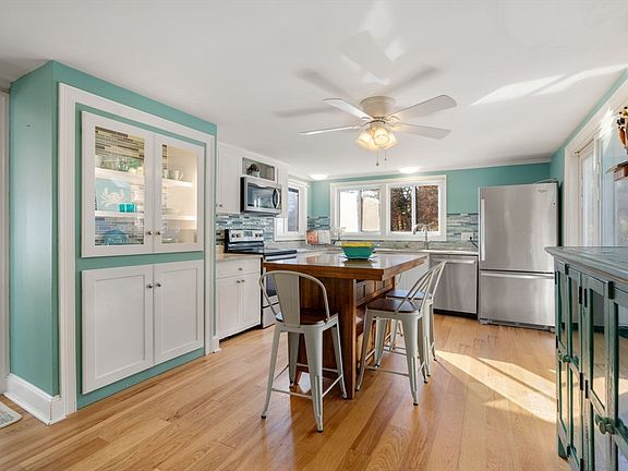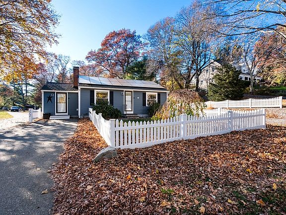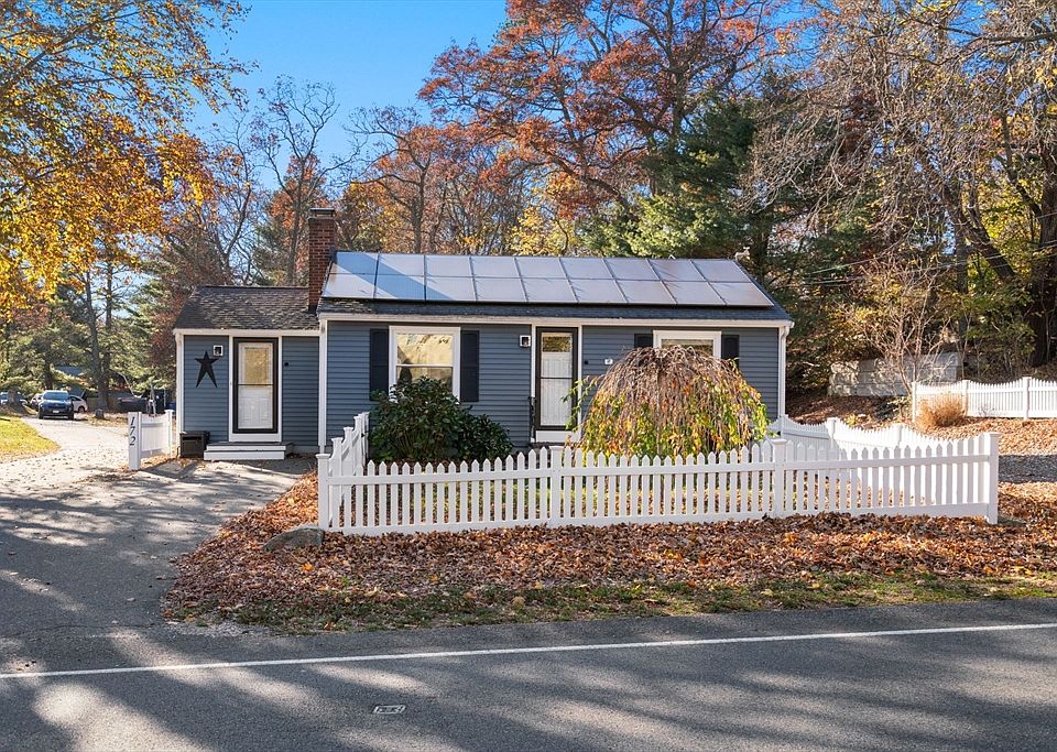Set on an oversized lot in a prime location, complete with a white picket fence, this sparkling ranch is close to downtown, the highway, and all the best features and fun of Plymouth! Step into the side entry office and be welcomed with a bright wall of windows and natural brick accents. Then be wowed when you enter the open sun filled floorplan with its gleaming hardwood floors. Enjoy a modern white kitchen with built in cabinetry, granite counters and stainless appliances that flows onto a welcoming composite deck. The expansive living room features a cozy fireplace with pellet stove and oversized windows and the renovated bathroom boasts a granite topped vanity, tile floor and neutral colors. Heating and cooling by mini split systems and leased solar panels make this home comfortable and efficient year round. More updates include Pella windows, vinyl siding, Blink security system and recessed lighting. Owned by one family for generations great pride of ownership shows here!