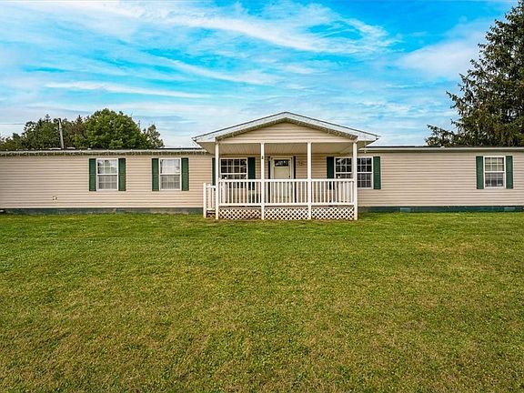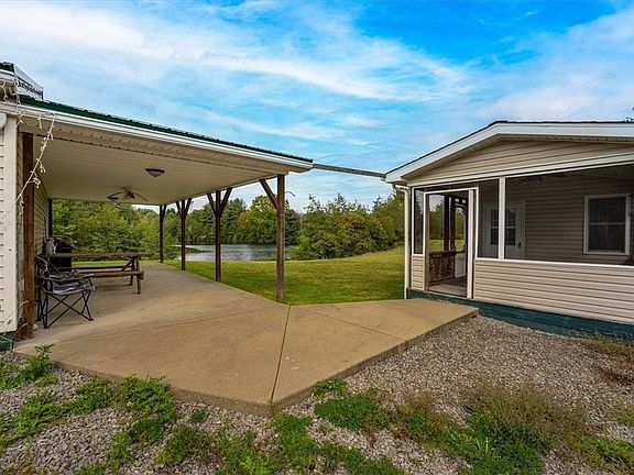 If you are looking for one level living with lots of space, look no further ! This 4.87 acre property has a spacious, well maintained, double wide manufactured home on a block foundation. Enjoy a spectacular view of the lake from your dock. This home has a large 16 x 14 addition and a 4 car detached garage. Appliances are included. NOTE: Only a portion of the lake is part of this property. Title was retired. New carpet and flooring throughout home. Kitchen stove is propane. The septic system was installed in November 2017. It is a small flow treatment facility. The dock and a portion of the lake are on this property.
