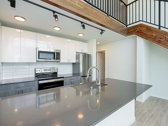 Gourmet kitchenFull appliance suiteStunning downtown viewsNatural lightDowntown viewsLarge windowsIn-unit washer and dryer