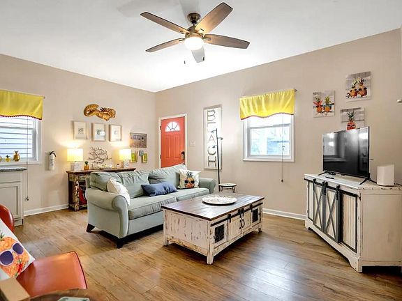 Delightful 2-bedroom, 2-bathroom home just a short stroll to the beach! This charming beach home features an open-concept living and kitchen area, spacious bedrooms, the primary bathroom includes a washer and dryer for easy living. Step outside to a backyard outdoor living space, ideal for relaxing or entertaining. Enjoy the added benefit of a private parking pad in the rear. Don't miss out on this one - come and see today!