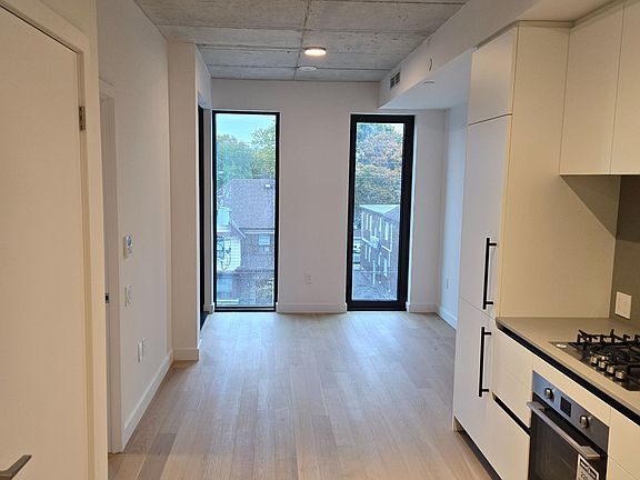 Functional open-concept designNew stainless steel appliancesModern kitchenQuartz countertopsFilled with natural lightFloor windowsPrivate balcony