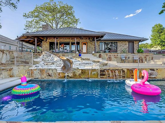 LAKE LBJ OPEN WATERFRONT ! 1720 Bluebonnet, with “close in” convenient Kingsland location features 4 bedrooms 2 ½ baths, an open floor plan with multiple living spaces, game room, and one of the best outdoor living arrangements on Lake LBJ. There's a lot of fun & enjoyment with 2 swimming pools, water slide, outdoor kitchen, multiple patios with plenty of room to entertain large groups of friends and family. It's a Scenic & Captivating setting with Spectacular views of Lake LBJ, Packsaddle Mountain, and the surrounding Hill country. The property features over 1/2 acre of estate-like landscaped grounds with 105 feet of East facing waterfront, topped off with a new boat dock with 2 slips + an area for JetSki's, and wonderful party patio deck above. Not only is 1720 Bluebonnet a great lake home it's an incredible STR opportunity. This property has a seasoned, 5 year proven track record of $150,000 + annual income. (Great VRBO reviews & return renters) This home is being offered fully furnished, transferable VRBO credentials, with housekeeping and lawn care in place. A lake home that helps pay for itself, it couldn’t get much easier than this !