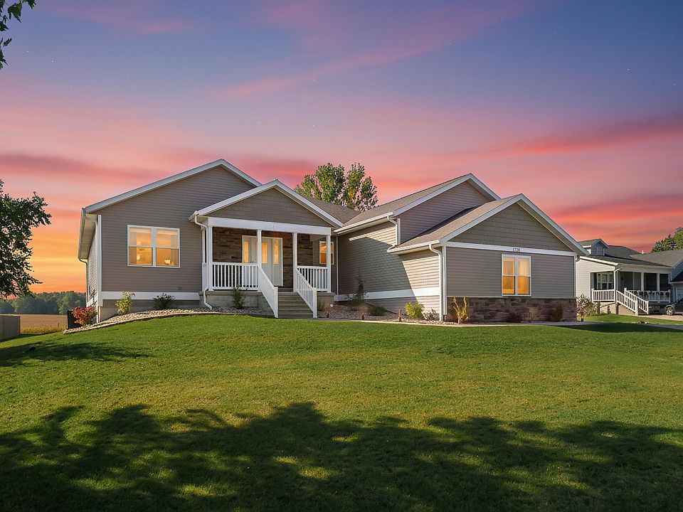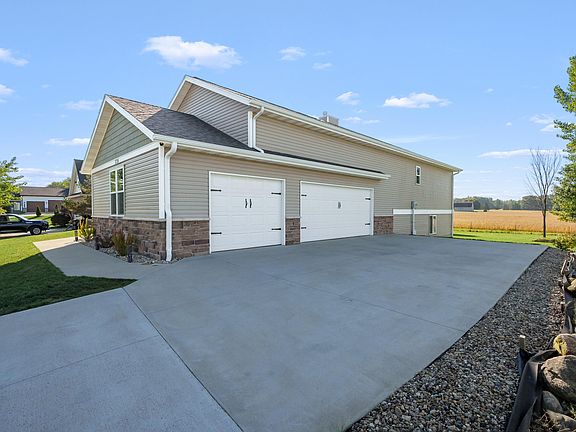 A side-loading 3-car garage offers room for vehicles, boats, toys, or storage. The walkout lower level features a finished full bath and is framed and ready for completion — offering daylight windows, a slider to a stamped-concrete patio, and endless potential for additional living or entertaining space. Only 1 mile to St Joseph River Public access.