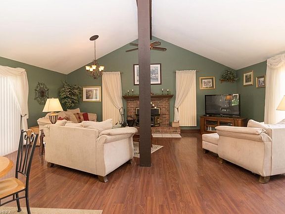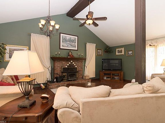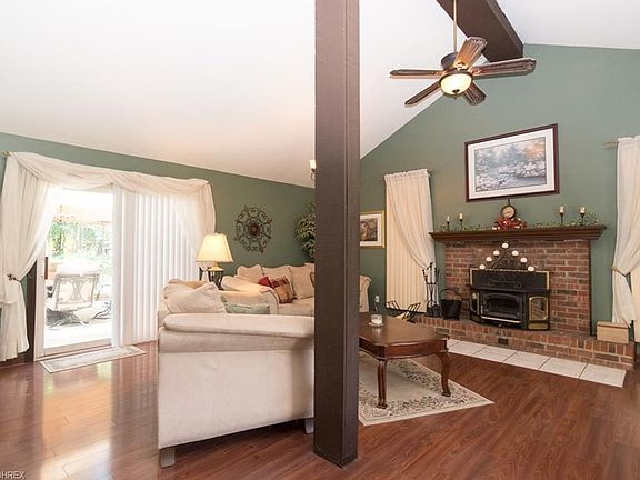 Come home and relax in this updated ranch style home! An absolute must-see, this home is move-in ready with plenty of indoor and outdoor space to enjoy. The foyer flows into the expansive step-down great room, which features a vaulted ceiling with exposed beams, a brick hearth fireplace, and sliding glass doors that open to the patio. Imagine relaxing with family or entertaining friends in this open and inviting space! The kitchen includes newer appliances and counters, with a breakfast bar that connects to an eat-in area. Two bedrooms on the first floor have en-suite bathrooms, providing privacy and convenience, while the third bedroom upstairs could also be used as a comfortable home office. Outside, the patio is a perfect backdrop for cookouts and outdoor activities, with tall hedges providing shade and privacy along the sides of the home. Recent improvements include newer exterior siding, electrical work, newer flooring throughout, as well as the installation of cement footers and replaced floor joists with all wood framing and floor tiles with new materials to foyer floor. Located just minutes from I-480 on a low-traffic street, this home provides the convenience of city living and the comfort of a quiet neighborhood. Look no further for a tastefully updated home in a prime location!