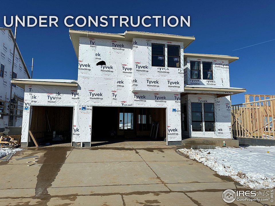 Trumark Homes Sugar Hills Plan 5 will be ready in June at Raindance National! This lovely two-story home features our Modern Prairie elevation with black exterior windows and extensive stone details. Upon entering the home, you will be greeted with 10-foot ceilings throughout the main level and a dramatic 20-foot ceiling in the dining room. An open concept kitchen features Beko stainless steel appliances, walk-in pantry, complimented by gorgeous Dusk stained shaker style cabinetry, and Blanco Statuarietto quartz countertops. Convenient office is tucked just off the kitchen. Cozy up to the modern linear gas fireplace in the great room on cold winter evenings or bring the outdoors in on a beautiful Colorado summer evening with two 8-foot sliding glass doors opening to an expansive covered garden level deck. Retreat to the grand suite upstairs to enjoy stunning sunsets and mountain peak views. The grand bath features an expansive walk-in shower with floor to ceiling tile, free-standing tub and spacious walk-in closet. Private ensuite with stylish corner windows and two additional bedrooms, bath and laundry room complete the upstairs. There is an additional bedroom and 3/4 bath on the main floor and a full unfinished basement with bath and wet bar rough in for any of your future needs. The 4-car tandem garage is perfect for a golf cart too! Don't miss out on this amazing home! Neighborhood amenities of walking trails, orchards, non-potable water and trash, are included in your metro district fees. Membership to the Raindance pool is optional and currently $480/year; there are also other membership options combining amenities in Raindance and nearby Water Valley - "WaterDance"!
