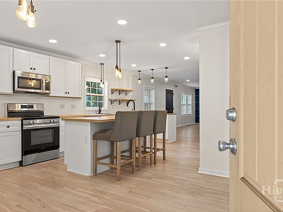 Contemporary finishesBeautifully tiled showerButcher block countertopsAmple recessed lightingBright open kitchenPrivate half-acre lot