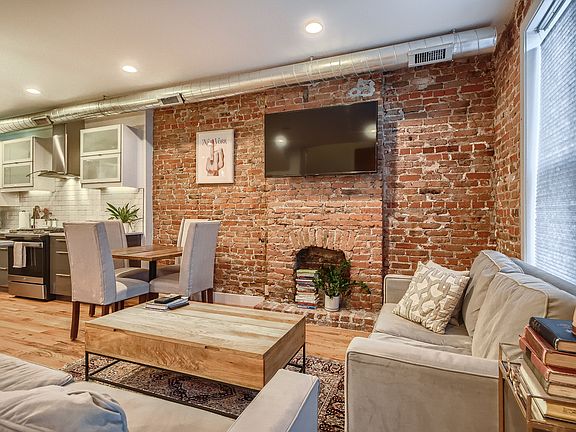 Step inside and be greeted by exposed brick walls, contemporary furnishings, and a stunning hand-painted mural that adds a bold artistic flair. The open-concept living space features a fully equipped kitchen with stainless steel appliances, stone countertops, and a spacious dining area ideal for entertaining or working remotely.