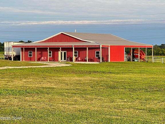 Located just a half-mile from the Carthage city limits, this thoughtfully designed 2,543-square-foot brick home offers the perfect balance of peaceful country living and convenient access to town. Crafted with quality and care, the home features three spacious bedrooms, two full bathrooms, and a bright, open layout that invites warmth and natural light throughout. The living areas are both inviting and functional, complemented by custom cabinetry, soft-close pull-out drawers, and a dedicated canning room that offers additional space for culinary or hobby pursuits. The master suite serves as a tranquil retreat, providing privacy and comfort in equal measure. At the heart of the home, a well-appointed kitchen features a propane cook stove and custom cabinetry, while a separate canning kitchen—wired with eight individual 20-amp outlets—awaits final touches such as stove and sink installation, offering flexibility for future use. Built on a post-tension foundation and insulated with both batt and spray foam (R30 rating), the home is designed for long-lasting durability and year-round energy efficiency. A propane central heating system and a pellet stove in the fireplace ensure comfort and charm in every season. Practical upgrades include electrical outlets under the soffits for holiday lighting, a gas line on the back patio for grilling or outdoor lighting, and a continuous-pressure water system in the attached two-car garage that maintains a steady 60 PSI water supply. The gated entrance—complete with water and electric—is easily controlled from inside the home for added convenience and security. Beyond the residence, the property showcases exceptional versatility and functionality. A newly constructed 56' x 70' climate-controlled building, used as a kennel business, is fully insulated (R30), heated, and cooled—offering potential for use as a studio, retail space, guest quarters, or event venue. A second structure—a 42' x 40' insulated shop with an attached 12' x 40' lean-to—provides ample space for equipment, storage, or creative projects. All three buildings are powered by a robust 400-amp electrical service, ensuring consistent and reliable operation. The land is equally impressive, with approximately 92.5% consisting of productive Class 2 and Class 3 soils—primarily Maplegrove Silt Loam and Newtonia-Eldorado Silt Loam—making it ideal for row cropping or hay production. The remainder is composed of Class 3 Gerald Silt Loam. The pasture is carefully maintained with a blend of endophyte-free spring and summer grasses, ensuring excellent forage quality. Fully perimeter fenced and divided into five large paddocks, each with automatic waterers, the property is ideally suited for cattle or equine operations. A serene, one-acre pond anchors the southern edge of the property and serves as both a functional water source and a scenic gathering place. Framed by rolling grass and tree shaded, the pond features a newly installed arched footbridge, perfect for quiet mornings, summer picnics, or evenings under the stars. The entire property is serviced by a private well, and new pipe fencing enhances both its security and aesthetic appeal. This exceptional Southwest Missouri estate offers far more than just a place to live—it presents a rare opportunity to create a lifestyle. Whether you seek a peaceful retreat, a home-based business location, or a property that can evolve with your family's needs, this one-of-a-kind offering is ready to welcome you home.