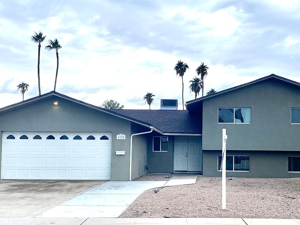 Welcome to this spacious 6-bedroom, 5-bathroom tri-level home in the desirable Tempe Gardens community! With 2,765 Sq Ft of living space, this property is designed to accommodate multigenerational living, comfortable working from home, quick commute to ASU, easy access to freeways, and anyone needing plenty of space. The home had a large remodel in 2021, including updated electrical, plumbing, HVAC, doors and wood trim, exterior stucco/paint, and new roof (in 2023). Main floor features a bright great room and updated kitchen with beautiful and durable LVP flooring, recessed lighting, walnut cabinetry, a kitchen island with breakfast bar, stainless steel appliances, and a charming bay window at the sink. A large family room or 7th bedroom with walk-in closet, full bathroom, large laundry room/pantry, and garage with 2 EV Chargers complete the main level. Upstairs offers 3 bedrooms, two with a shared bathroom with dual sinks plus a shower/tub combo, and a third primary bedroom with ensuite bathroom featuring double sinks and a step-in shower. The lower level adds 3 additional bedrooms and two updated bathrooms, one bedroom is also ensuite. There is plenty of additional off-street parking and the backyard is maintenance free and ready for play. With updated everything - this home is in a prime location and move-in ready.