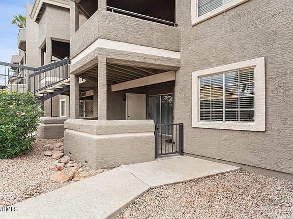 Close proximity to Phoenix Mountain Preserve! First floor condo in premium location at The Cliffs at North mountain. Enter through your private gated front patio and see what this unit has to offer! Inside you will find newer engineered wood flooring throughout. Head over to the kitchen where you will discover matching stainless steel Whirlpool fridge and microwave, and plenty of cabinet space. Around the corner, your primary bedroom features a sliding door with access to patio, walk-in closet, and Jack and Jill bathroom! When you want to get out, head on over to one of the two community pools or take advantage of the gym! Home has been updated with Vivint Smart Home security system and heavy duty security screen door. Now is your opportunity to make all of this yours! Don't wait!