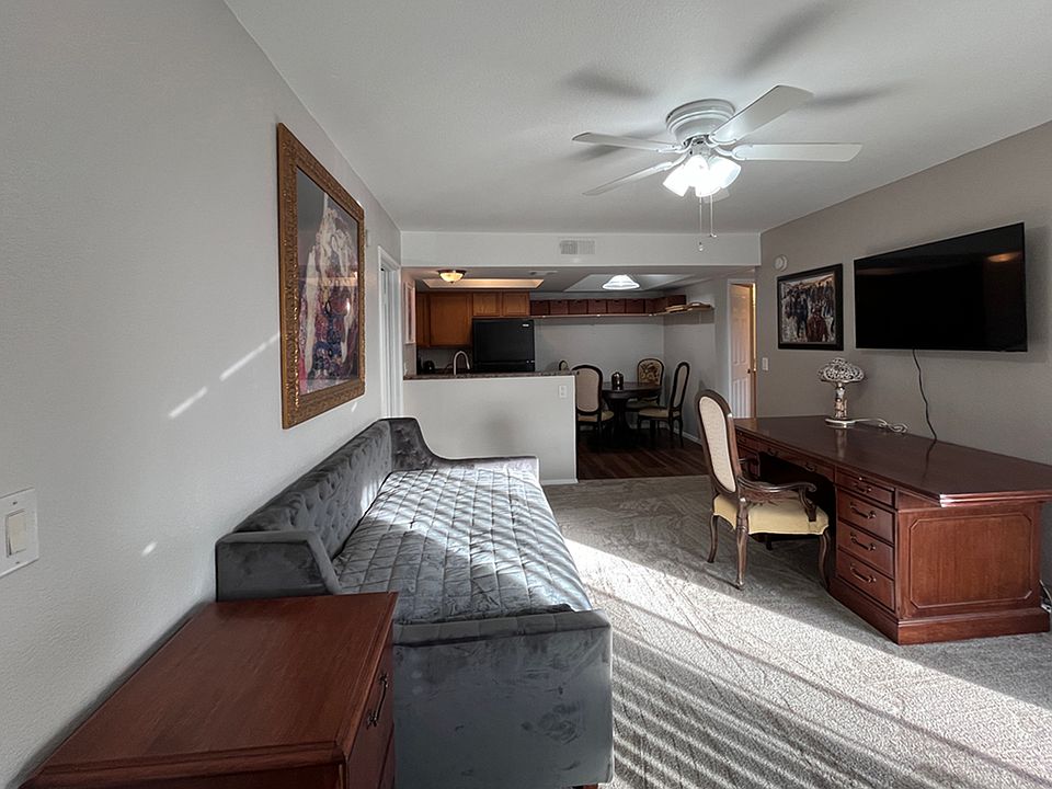 Elegant 2BR/2BA condo at The Cliffs at North Mountain, ideal for professionals seeking comfort and privacy. Bright, open living area with an executive desk, modern sofa, and TV. Fully equipped kitchen, dining nook, and two stylish bedrooms, each with a TV and ample storage. Enjoy two full bathrooms, a private balcony with mountain views, and resort-style amenities including two pools, spas, a gym, and a clubhouse all in a quiet Paradise Valley Village location.