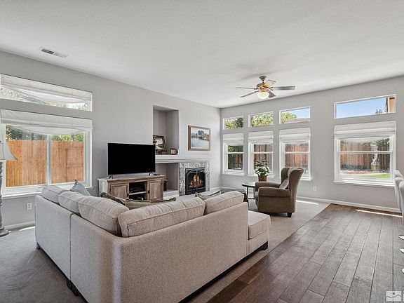 Discover your dream home in this meticulously maintained 3 bedroom, 2 bathroom, 3 car garage home that sits on a peaceful cul-de-sac in the coveted South Meadows area. Step into the heart of the home, a fully remodeled kitchen featuring a gas range, granite countertops, and a convenient breakfast bar. Equipped with modern luxuries, the refrigerator offers both hot water and ice. The master suite was fully renovated in 2018 to include a rejuvenating steam shower, heated, flooring in the bathroom, large soaking tub, dual vanities, and 'right heigh single piece' commode. Home features the Wood-Look Tile that has the appearance of wood but durability of tile flooring. Outside, the landscaped yard features a large paver patio with ample seating and entertaining areas, a fire pit, dog run, and beautiful views. Book cases in guest bedroom will stay. Office/den and laundry room both have brand new tile flooring and new Anderson windows throughout family room and office. Don't miss out on this one of a kind home!