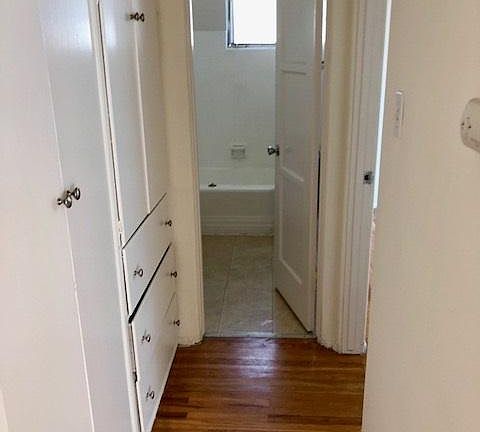 Located in a 40's vintage courtyard building, this front upper floor unit is light and bright with expansive windows in all rooms. The apt was just painted in a two tone color scheme which sets off the original hardwood floors and woodwork/moldings nicely. The floor plan is ideal & room sizes are all generous. The galley kitchen has stainless steel sink, tile floor, newer stove, great storage and a back door. The bedroom has a generous closet and there is a floor to ceiling linen closet in the hall. The bath has been updated & remodeled. Other amenities are wall A/C, updated lighting and hardware, & covered parking for one car. Garfield Park, Bristol Farms, Starbucks, Gus's restaurant, the 110 freeway, the Gold Line, and much more are all within blocks. The unit is open daily during daylight hours, no appointment is needed (1720 Grevelia #E - located up the front stairs). Good credit is required. Cats are acceptable with a deposit. The rental office is offsite. Applications can be downloaded at bevenandbrock.com & e-mailed to . Maria's direct line is (626) 243-4141. A great value! Owner pays for water,trash, & gardener