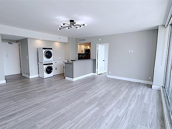 Enjoy living steps to endless dining and entertainment at Home Tower in Downtown Hollywood! This Large 1 Bedroom, 2 full bath condo boasts an oversized Kitchen, expansive views that stretch from downtown Hollywood to the Ocean. Newly Renovated with state of the art appliances, tons of space to entertain on Quartz countertops, In-unit Laundry, community pool and a fitness center. Unit features two separate balconies off of the living room and bedroom through floor to ceiling windows. Great Walkability with Publix, Arts Park around the corner. Hollywood Beach Broadwalk is just over a mile away. Water and Cable included in rent. Parking is surrounding the building and is $175 per year for city permit.