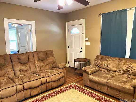This is a cute home with a lot of potential. When you enter the front door, you enter the family room with a nice fireplace which you will see it opens to the dining room and kitchen. The wood floors continue throughout the house. The kitchen is large with plenty of cabinet space, stainless steel appliances and kitchen eating area. Primary bedroom is large with ensuite bathroom with walk-in closet. The other guest rooms are nice size as well and share a bathroom. Washer, dryer and refrigerator included. There is a workshop behind the house with patio and fenced yard all on a third of an acre corner lot. Enjoy your Arkansas evenings with it gentle breezes on a great front porch. Seller will pay $1,000 in closing costs. "Sold as is where is"