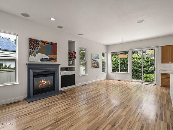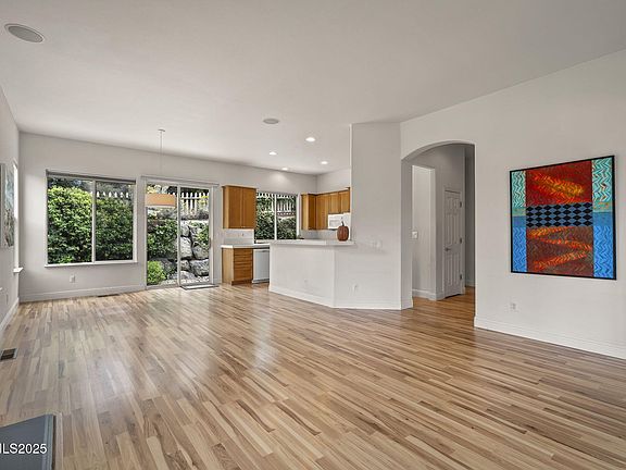 This single-level gem in the gated community of Caughlin Creek offers both comfort and convenience with lovely views of Peavine Mountain. Step outside to explore 24 miles of forested trails, wildlife, ponds, and nearby eateries. Inside, the open floorplan welcomes you with soaring ceilings, abundant natural light, and a bright, cheerful ambiance. A dedicated office provides flexibility and can easily serve as a third bedroom. Designed for easy living in one of Reno's most sought-after neighborhoods, this home is the perfect blend of lifestyle and location, and it's well suited for a lock 'n leave lifestyle. Schools, shopping, I80, other services and UNR, and the Reno Tahoe Airport are just minutes away.