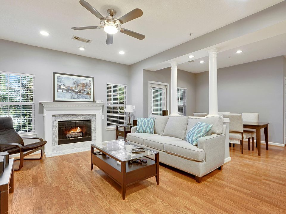 Welcome to the community of Edgewater at Town Center where you can enjoy urban living at its best! This garden style condo has a front and center water view! The entire community boasts mature trees giving you an instant feeling of peace and serenity, yet just minutes from major commuter routes, shops, restaurants, W&OD trail, Capital Bike Share, and the new Reston Town Center Metro (Silver Line). Featuring 2 bedrooms, 2 full bathrooms and over 1,100 square feet, this condo is the largest model within the community! As you open the front door, you are greeted with an open floor plan with the kitchen area overlooking the family room. Cozy up next to the elegant gas fireplace on those chilly evenings. Step out from the dining room to the private balcony with and an oversized storage unit. The primary bedroom suite has been maximized for comfort and functionality with a massive walk-in closet and an en suite bath. There is plenty of room for family and guests in the spacious 2nd bedroom (with pond views!) and additional full bath. This home is complete with a convenient in-unit washer/dryer. There is also a separate storage closet steps from the unit. This community also features an outdoor pool, modern fitness center, jogging/walking paths, private pond and plenty of guest parking. Enjoy the resort-style living all while being just minutes from the town center! Apply online, email agent for application link. Renters Insurance is required Only 2 pets allowed (per condo regulations) Prefer 12-18 month lease 1 assigned parking included