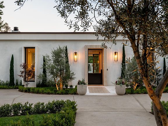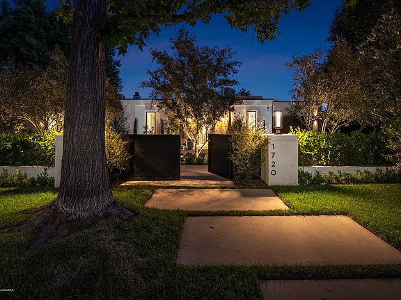 Lombardy Estates originally designed by architect Theordore Pletsch. Pletsch built hundreds of homes all over San Marino & Pasadena specifically, 1720 Lombardy which has undergone an extensive REDUX by local renowned architect. Grand scale single level Hollywood Regency is sure to wow the most discerning buyer looking for an architectural gem. Structures on site exude a rare blend of organic elements creating a hybrid of modern & classical. Behind gates is a custom built 10,000± SF under roof estate, featuring mid-century lines, exterior limestone portals framing 9' windows, limestone facias & a travertine stone clad portal flanking the 10' black steel pivot door entry. Upon entry, you're welcomed by the warmth of a rift white oak cladded library transitioning your eyes to the breathtaking view of the sparkling pool perfectly placed flanking the detached structure creating a Roman Grecco style ambiance. Massive sliding glass doors open from each room to the expansive covered patio connecting all spaces. Main residence incorporates 12' ceilings, formal dining room, 6 beds, 8 baths, including a luxurious master retreat, laundry room & circular driveway for ample parking. Master bath offers a marble tiled full wall curved shower w/ white oak vanities & plaster walls. Attached pool house cabana draws guests into the back yard with an open floor plan, full kitchen and bath. Grounds include outdoor kitchen, gym, 3 car garage & connected outdoor/indoor flow for today's modern living