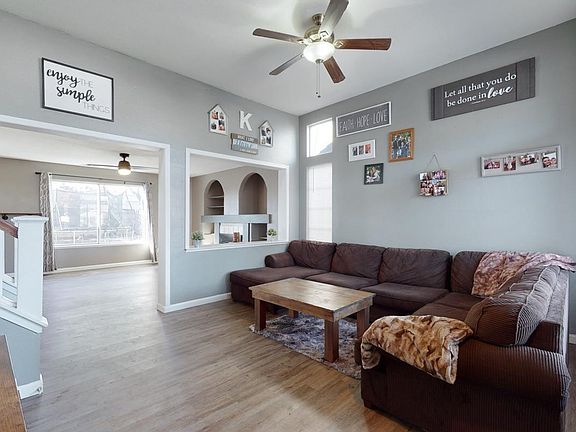 Beautiful home with 4 bedrooms plus an office area off the master, 2.5 bath and 2007 square feet. This house includes a living room, family room, dining room, open kitchen with island, fireplace. Kitchen offers tile counters, gas stove, dishwasher, microwave, breakfast bar and oak cabinets. Interior laundry room, ceiling fans and central heat and air. Master bedroom includes ceiling fan, two walk in closets and a separate office with door. Master bath includes double sink vanity with tile counters and bathtub with shower. Large covered patio and open backyard. 2 car garage. Renter pays utilities.