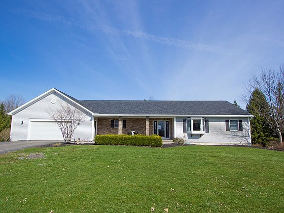 Custom ranch with open floor plan and lower in-law suite privately set back on almost 9 acres of meticulously landscaped yard with the chance to purchase another 1 acre lot attached to the property. You will fall in love with newly added granite counter tops in the kitchen and bathrooms, oak floors through-out, cathedral ceilings, 2 tiered "Evernew" deck, tear off roof '15, full kitchen/laundry rooms on both levels, and huge master suite. Upper level is 2200 sq ft and lower level is 2200 sq ft. 1 Year home warranty included. Move in ready! This is a must see!!