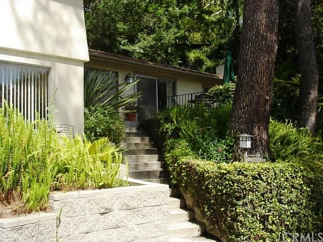 WOW - owner just put in new hardwood floors, new painting, 2 new tiled showers and updated many features. Take a look at this unique and charming Tri-level home in the hills of Glendale. Terrazzo Tile entryway with Step-down living room with fireplace and sliding door to the private front yard with views of downtown Glendale and Los Angeles. Large eat-in kitchen with skylights and granite counter-tops and plenty of pantry space. In addition there is formal dining room. Step up to the master suite with built-ins and large closets, 2 bedrooms and a full bath. Step down to the additional bedroom and bath with an the entrance to the 2 car garage with washer dryer hook-ups. There is a lush private hill behind the house which offers complete privacy. The home is located down a private drive off of Melwood Drive. There is central air and heat, automatic sprinklers and a gardner is included. Front of the home is nicely landscaped with lots of trees. The additional skylights give this home extra natural light.