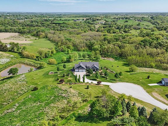 Spectacular acreage near Winterset with gorgeous 4+Bedroom/4 Bath home on 21+acres, including hunt-able private timber ground. It’s the details that make this property so special. Enjoy numerous outdoor spaces: covered deck with view of 2 ponds (1 is stocked), a covered patio, outdoor fireplace on fabulous open patio, large Pole Barn for all your hobbies, toys and tools and a 3+car tandem garage. There are mowed paths throughout property to enhance enjoyment. Inside, the details dazzle. The primary suite boasts a soaking tub, steam shower, and walk-in closet. The giant island and high-end appliances sparkle in the chef’s kitchen. The main level also has another ensuite bedroom/bath and beautifully appointed den and don’t forget those spectacular views! The walkout lower level has 2 additional bedrooms, an ample rec room, and a workout/hobby/potential 5th bedroom. Geothermal heating/cooling pull the details together in the meticulously cared for show home. Video of stunning property available upon request. Schedule a tour with your favorite realtor today! All information is from assessors page and owner.