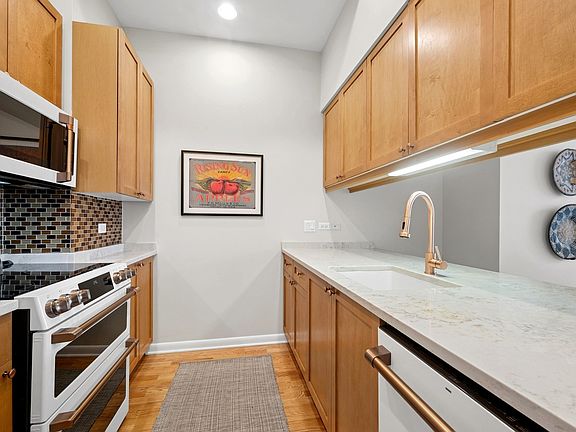 Rare opportunity for a downtown Evanston condo with massive outdoor living space!! 500 sq ft terrace to enjoy time outdoors much of the year! This 2 Bedroom, 2 Bath condo is move-in ready with designer finishes. Floor to ceiling windows bring in tons of light and access to the 500 SF Terrace. 10' ceilings enhance the space. Wonderful split bedroom floor plan offers versatility and space to spread out. Unbelievable storage with two walk in closets, huge walk in pantry, laundry room, plus full size storage locker just steps from the unit on the same floor. Upgrades include custom floor to ceiling drapery, plantation shutters, new walk in shower in 2nd bath, new quartz countertops, new Cafe line appliances with brushed bronze handles and counter depth refrigerator. Heated garage parking included. Elevator building with quiet location with only 3 units on 2nd floor plus easy access to exercise room. Walkable to everything downtown Evanston has to offer with less than a 5 minute walk to Metra & CTA trains, Northwestern University, beaches and more. Rarely available terrace level condo at the Sienna - move right in! Available furnished, if desired.