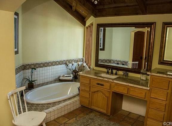 Stunning Custom Spanish Estate located in highly sought after area. This home features exquisite open beam ceilings, 3 fireplaces, huge master retreat, separate casita, rock slide pool, outdoor entertaining area, lighted/fenced tennis court, various fruit trees, designated garden area, horse area and a large storage shed. The property underwent a major renovation in 2010 with all new light fixtures, plumbing fixtures, tankless water heaters with recirculation system, kitchen with SS appliances, Carrier HVAC system, bathrooms, flooring and paint. The exterior renovation included a rock slide pool with high energy efficiency pool equipment, BBQ area, tile patios, large outside fireplace and bar, beautiful landscaping and much more. This home is Stunning!