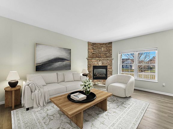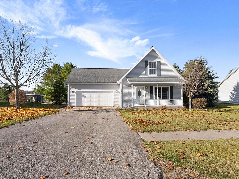 Set on a quiet cul-de-sac within the lovely Village Ridge community and just minutes from downtown Traverse City, this three-bedroom home offers an easy, low-maintenance lifestyle in a highly convenient location. A covered front porch welcomes you inside to a bright main level featuring high ceilings, a cozy gas fireplace, an open kitchen, and seamless access to the fenced backyard. The main-floor primary suite includes a spacious walk-in closet and a private ensuite bath. Upstairs, two additional bedrooms and a full bath create a private space for family or guests, along with an extra flex area perfect for a home office or play area.The unfinished lower level offers outstanding potential, already plumbed for a third bathroom and ready for future customization to fit your needs. Additional features include an attached two-car garage with extra storage, neighborhood walking paths, and easy access to area amenities. Please note, some photos have been staged with virtual furniture.
