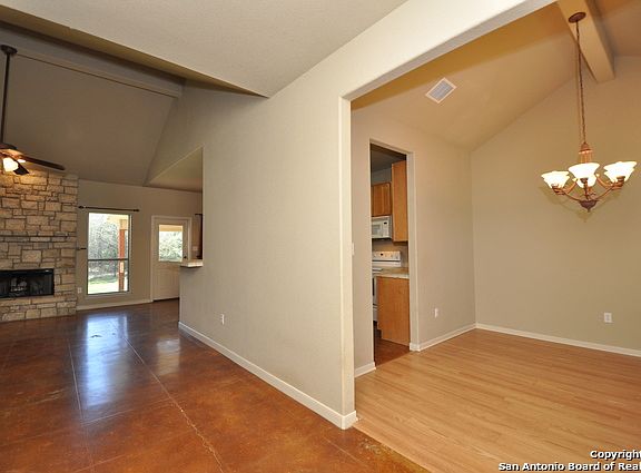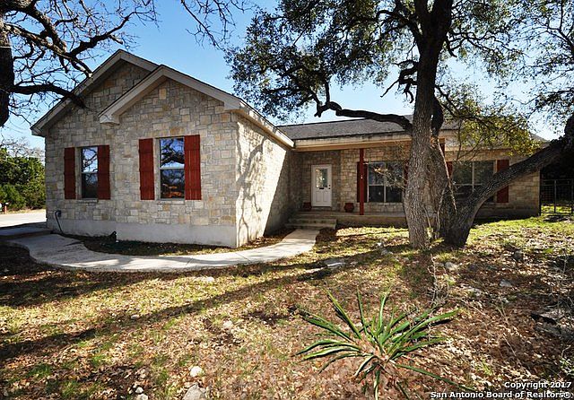 Secluded neighborhood with access to the Guadalupe River is minutes from shopping, dining, school, & Canyon Lake. Easy access to Bulverde, Spring Branch, New Braunfels, Boerne, Blanco, & San Antonio. Vaulted ceilings in living, master, dining & 1 sec. bedroom. Carpet in Master ('16) & wood laminate in other bedrooms & dining ('16). Relax & entertain on large covered patio. Mature & vintage oaks. Well storage tank & house. Large detached storeroom.Verify elementary school with CISD, as shows both ASIS & BBES