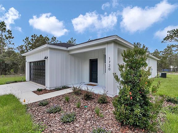 Welcome to your dream farmhouse retreat! This beautifully crafted 3-bedroom, 2-bath home sits on just under an acre of land with no HOA and paved road access, offering the perfect blend of modern convenience and country charm. Step inside to find tile flooring throughout—no carpet here—making maintenance a breeze. The spacious open-concept layout features a bright white kitchen with quartz countertops, stainless steel appliances, and ample cabinetry, ideal for both everyday living and entertaining. Thee primary suite, complete with a spa-inspired bathroom and walk-in closet. Plenty of peace and quiet on this lot with tall pine trees surrounding. Enjoy the Florida lifestyle with plenty of outdoor space, perfect for a garden, pets, or weekend bonfires under the stars. Located just minutes from the area’s natural springs, and only about an hour to the Gulf Coast beaches, this home offers the best of both worlds—peaceful country living with easy access to recreation and relaxation. With a 2-car garage, quality finishes, and room to roam, this home is ready for you to move in and make it your own! Buy a new home today so you don't have to worry about maintenance or remodels. This home is move in ready and comes with a fantastic builder warranty!