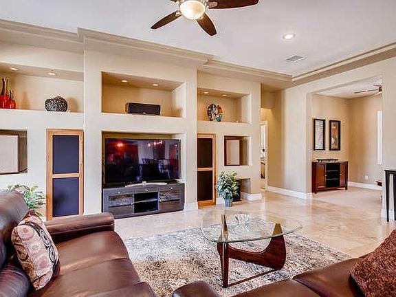 Fabulous fully furnished executive home in one of Las Vegas most prestigious historic neighborhoods. A 7000 sq. ft. entertainers dream home on 1-acre of property. Beautifully furnished. Large open concept living room / bar / dining / kitchen area, all with beautiful views of the luxurious resort level back yard featuring a stunning pool with multiple water features, jacuzzi, fire pit, and a large gazebo with kitchen and bathroom. The living room features a large entertainment center with a 7.1 surround system. The kitchen features beautiful custom cherry cabinets, black galaxy granite countertops, and GE Monogram high end appliances. This executive residence features a huge master bedroom downstairs with a California King bed, beautiful master bath, and a walk in closet, as well as another master bedroom upstairs featuring a king sized bed, beautiful master bath, walk in closet, and a balcony overlooking the backyard and pool. All bedrooms have their own full baths.