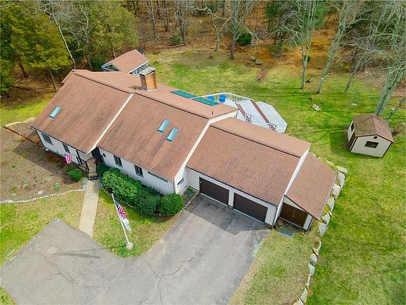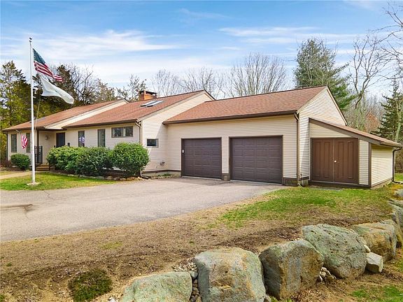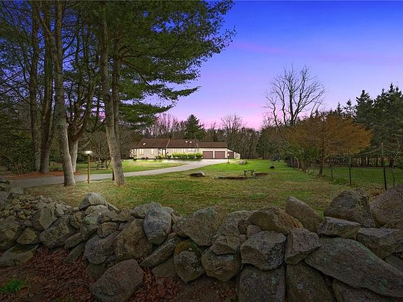 Welcome to your dream retreat nestled in the serene Stony Lane neighborhood! This 2-3 bed/3 bath sprawling executive ranch-style home on 2.1 wooded acres boasts a harmonious blend of comfort, elegance, and potential. The heart of this sunny, open concept home is the spacious kitchen which is seamlessly integrated with the living and dining areas, making it perfect for entertaining guests or hosting intimate gatherings. Cathedral ceilings, double sliders, newer expansive skylight windows, and beautiful dark hardwood floors grace the main living space. Cozy up by the warmth of a double-sided brick fireplace, featuring a pellet stove for chilly evenings. The spacious primary bedroom oasis includes a massive ensuite bath, fireplaced sitting area, a laundry closet, plus a sunny 3 season sitting room perfect for reading, yoga, tv etc. with an attached deck. The fully finished basement with walkout, offers loads of additional living space. With full-size windows, a full bath, and a spacious cedar closet, this area presents endless possibilities, ideal for multi-generational living or creating the ultimate entertainment zone. The gorgeous, expansive, composite deck presents a picturesque setting for alfresco dining or basking in the tranquility of your wooded surroundings. With an additional covered deck, seamlessly blending indoor and outdoor living, entertaining becomes a breeze year-round. A 2 car garage plus two sheds complete this outstanding property.