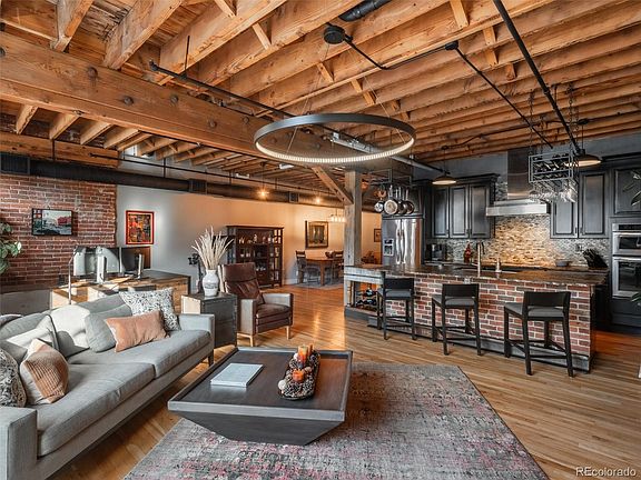 Experience the ultimate loft living in the Street Car Stables – the original home of Denver’s horse-drawn carriages that transported travelers throughout the city until 1889. Repurposed for various businesses over the years, it was converted into exceptional loft residences in January 1994. Ideally situated across from the iconic Union Station, you are in the heart of LoDo with all of the shops, restaurants, entertainment venues and a major transportation hub. As you step into this condominium, the massive wood beams supporting the 12’ ceilings and the exposed brick walls set the tone of the historic and loft vibe. This fully updated and spacious loft features a balcony with incredible light reflections on the surrounding buildings from sunsets, sunrises and moonscapes. The ever-changing light on the buildings is magical to watch from inside the residence or from the balcony. The redesigned primary suite is a luxurious retreat featuring a custom bathroom double vanity illuminated by Sonneman Gotham Sconces, an expansive shower, double walk-in closets, in-unit laundry and handcrafted barn doors - all completed during a 2019 remodel led by Court Earp Interior Design. The kitchen is a chef’s dream equipped with an induction cooktop, industrial-style hood/vent, steel farm sink, stainless steel appliances and island seating accented with a section of train track, adding a unique touch to the space. The extraordinary rooftop common area has spectacular views of Union Station, the water fountains, Coors Field fireworks and a 360-degree panorama. With multiple seating areas and a grill, the rooftop is the perfect place for entertaining and relaxation. Your new home awaits in the heart of Denver, offering an unparalleled blend of historic charm and modern convenience. Welcome to the Street Car Stables.