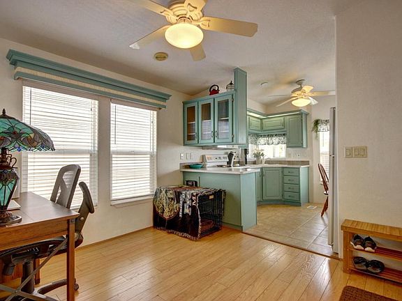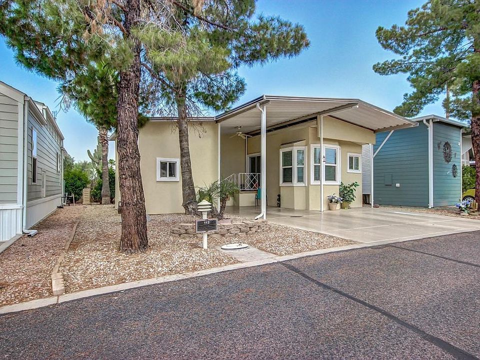2003 FRONT KITCHEN, CAVCO PARK MODEL WITH A 320 SQ FT ARIZONA ROOM. ONE BEDROOM/ 2 BATH.Front deck, kitchen and both baths have tile flooring. Both baths have step in showers. Park model living area and Arizona room have pergo flooring. Extra large closet in the Arizona Room. Ceiling fans in all rooms. Kitchen has some updates. Master bath opens into the bedroom. Two electric hot water heaters. Awning for the car has been extended. Storage shed has built in cabinets and pull down ladder to the upper area. The Park Model is under awning. The whole unit is stuccoed. Stack washer & dryer in the 2nd bathroom. New 15 seer heat pump/AC installed 3/2017