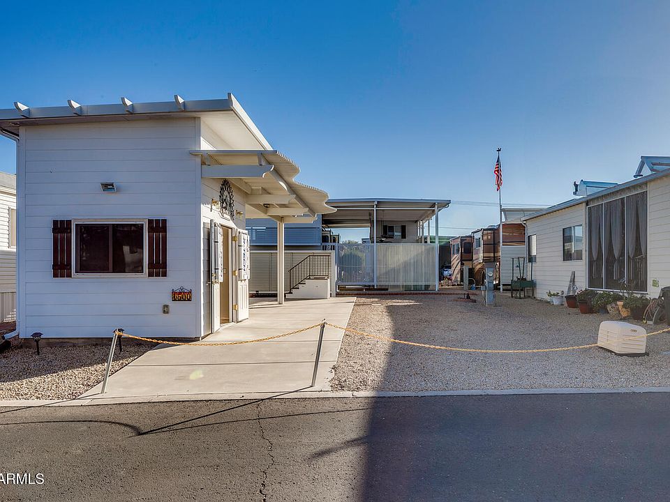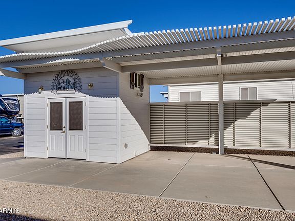 DESIRABLE RV LOT IN SECTION 6 AT HAPPY TRAILS! This property features: Two story shed, washer/dryer (included), sink, tiled floor, double door entry to shed (will accommodate golf cart), pull down ladder to second floor, privacy screening around patio area, partial awning over patio area and an RV port that will accommodate any size RV with unmetered water, sewer and 50amp service. RV port is not covered to allow for the winter sunshine. COME TAKE A LOOK! You own the land with no lease payments! Affordable HOA fee includeds water and refuse service and access to all the ammenities. Happy Trails Resort is a very lively 55+ Gated Community highlighted by Pickleball & Tennis Courts, Multiple Pools and Spas, Fitness Center, a Host of Craft Clubs, and Restaurant. Lots of Live Entertainment and tons of get-togethers mean there's never a dull moment. Come see what the Happy Trails Lifestyle is all about!