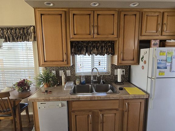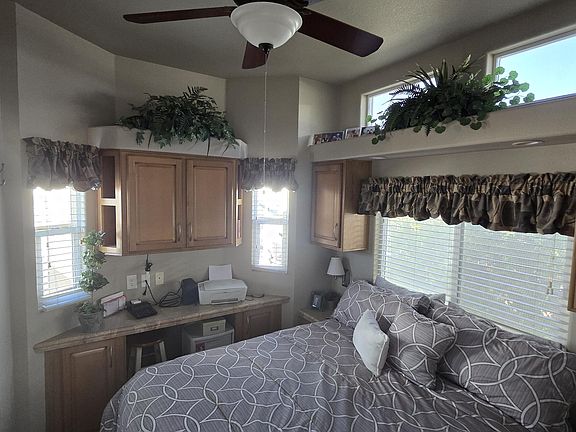 Fully furnished and move-in ready, Including Golf Cart. Shed with Loft, Half Bath, and built-in Cabinets. Patio with extended Awning, Water Feature, Barbecue, Privacy Fence. Don't miss this opportunity to enjoy the active adult lifestyle provided by this 55+ gated community where the lot is deeded to the owner.