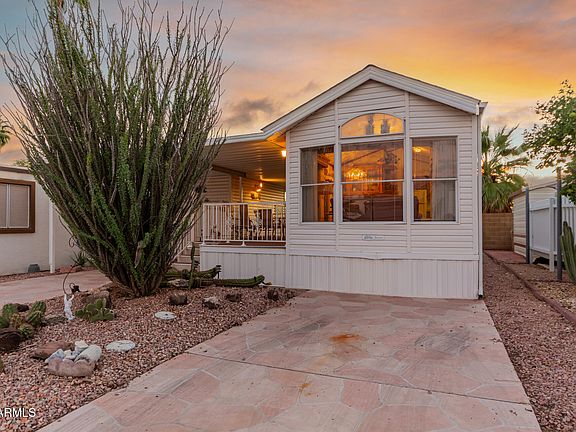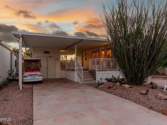 This adorable resort oasis home awaits you in the highly sought-after Happy Trails Resort! Offering a cozy covered patio, carport parking, and the comfort of practical and low-maintenance living with 1 bedroom and 1 bathroom. The interior showcases cozy living spaces with vaulted ceilings, carpet with wood-look flooring in all the right places, crown molding, and neutral paint. The nicely sized kitchen features spacious cabinetry, ample counter space, and built-in appliances for a seamless cooking experience. Enjoy your morning brew in the backyard, and don't forget to visit this vibrant adult community's amenities, such as the pool, spa, golf, tennis court, and clubhouse, just to mention a few! What are you waiting for? Come see it before it's too late!