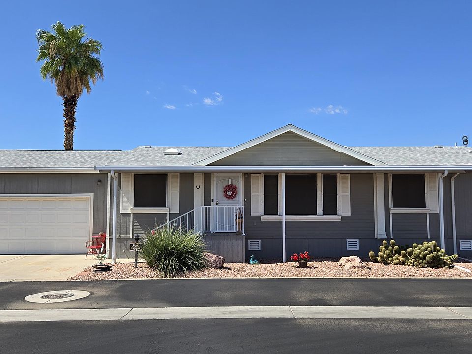 Super-wide 2BR 2BA Den located in Happy Trails Resort. Don't miss this opportunity to enjoy the active adult lifestyle provided by this 55+ gated community, where the Lot is deeded to the owner. Amenities include Golf, Tennis, Pickleball, Crafts, Restaurant, R. V. parking and more.