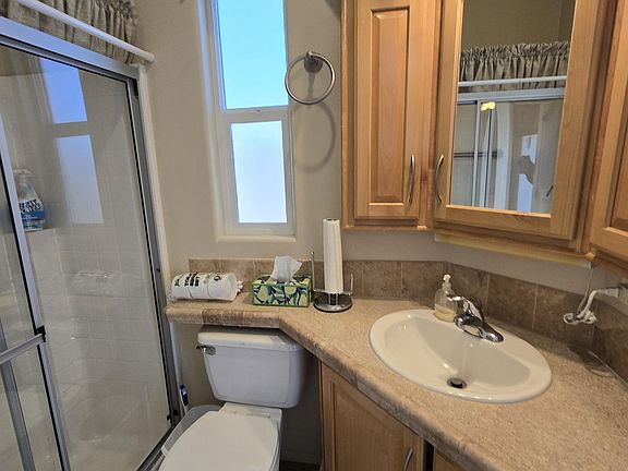 CORNER LOT1 BR, 1 BA Park Model located in 'Tear Drop' Section of Happy Trails Resort. A few steps from Neighborhood Activity Center equipped with Kitchen, Meeting/Dining Room, Pool Table, Swimming Pool and Spa. Easy access to Main Entrance, shopping, and entertainment. Fenced patio area for outdoor living and 10X12 storage shed. This is a 55+ community where you own the lot.
